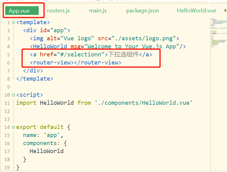 7.在App.vue文件中加入刚才注册的路由(用超链接方式)