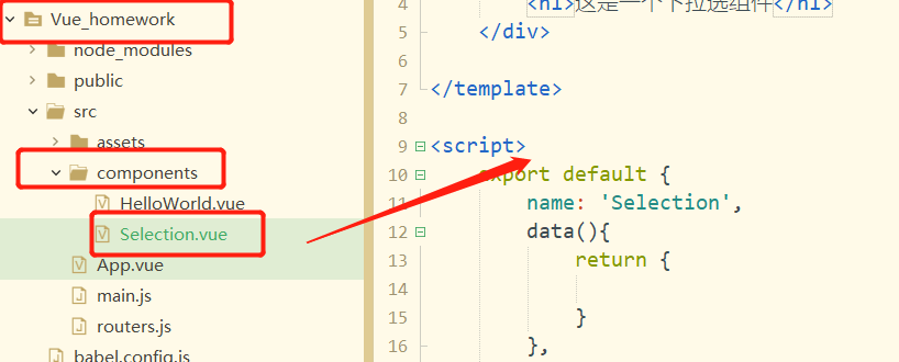 5. 在components文件夹下创建一个组件,记得首字母大写