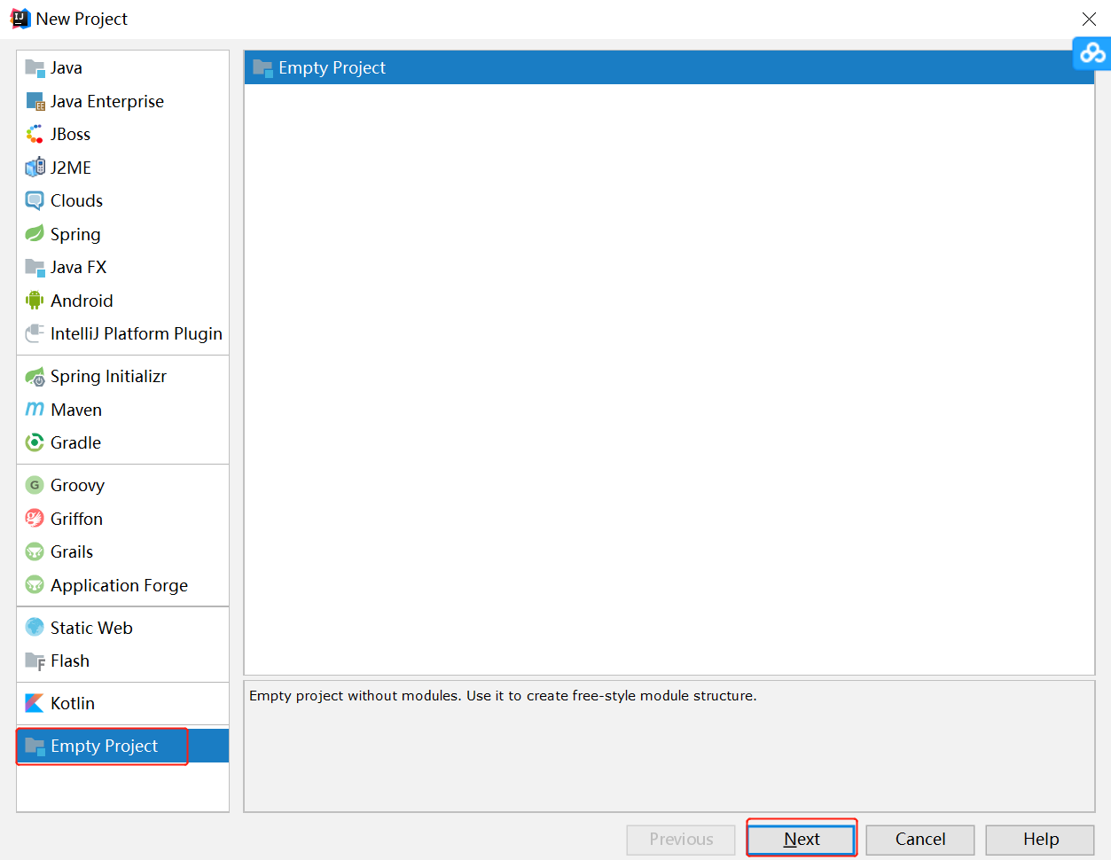 1、创建空项目(空项目当作工作空间)。选择 File->New->Project->Empty Project,或者 Create New Project ->Empty Project。修改Project Name 为项目名称,Project location 为项目路径。