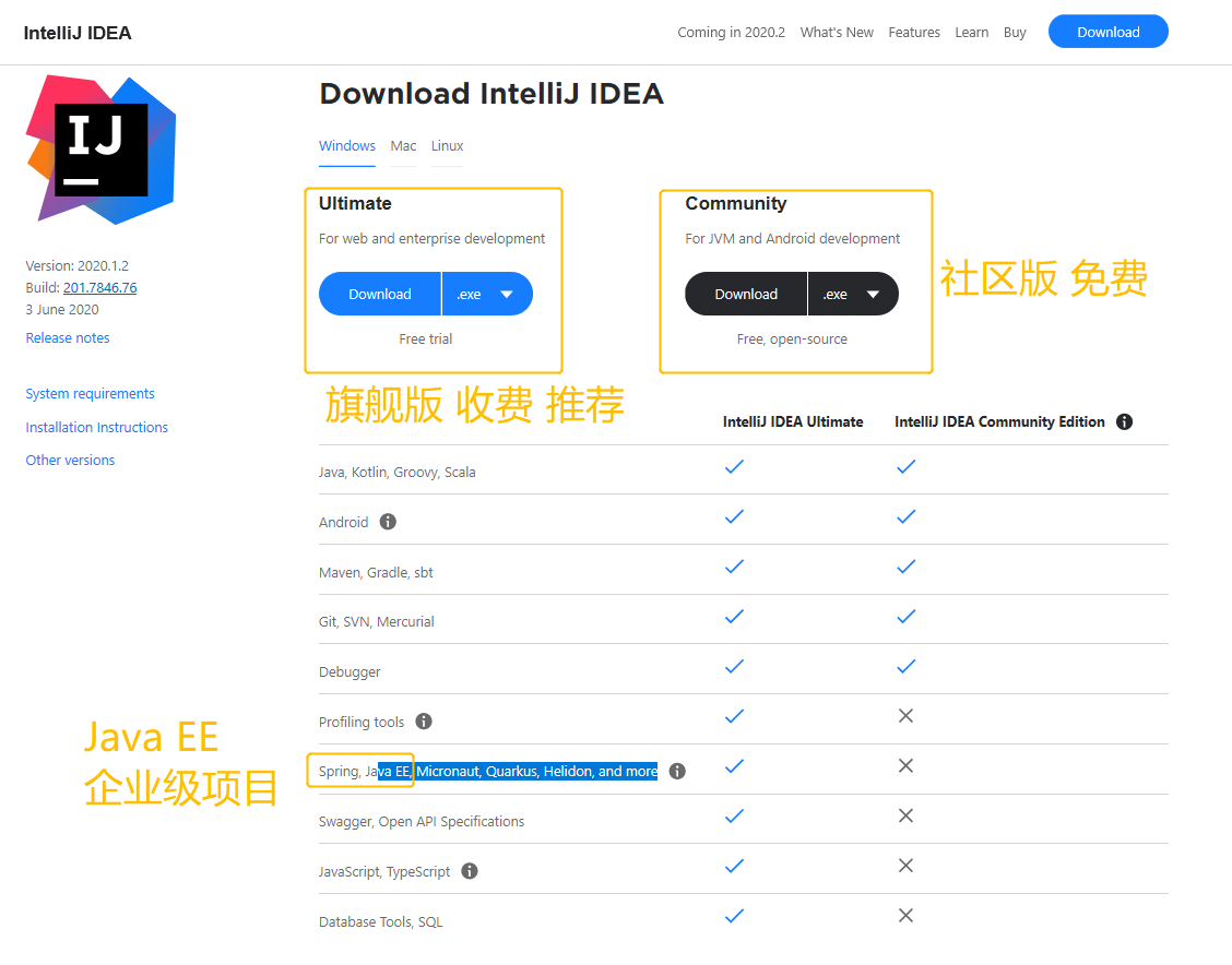 一般官网都显示最新版本,在下图中我们可以看到 Version:2020.1.2