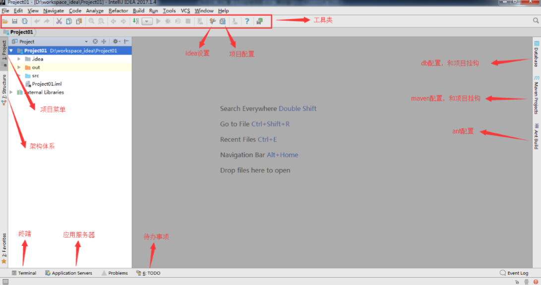 - 工 程 下 的 .idea 和 Project01.iml 文 件 都 是 IDEA 工 程 特 有 的 。 类 似 于 Eclipse 工程下的.settings、.classpath、.project 等。
