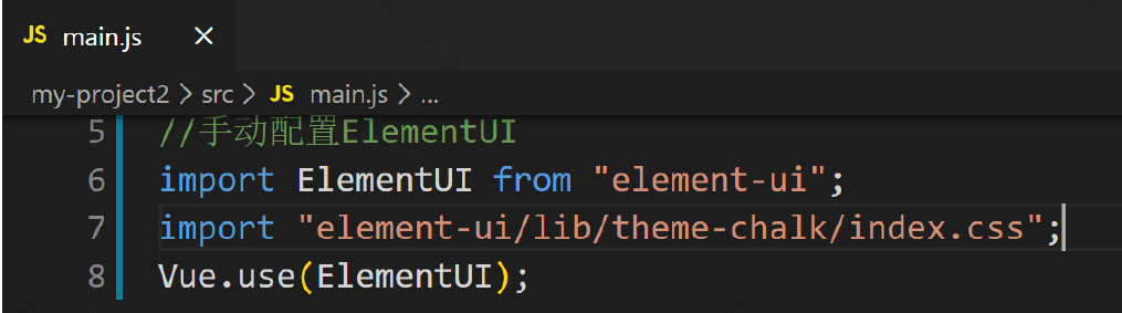 3. 打开 main.js , 导入Element-UI 相关资源.
