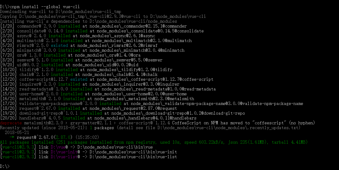 输入命令:cnpm install --global vue-cli
