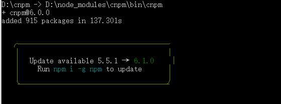 输入命令:npm install -g cnpm --registry=https://registry.npm.taobao.org