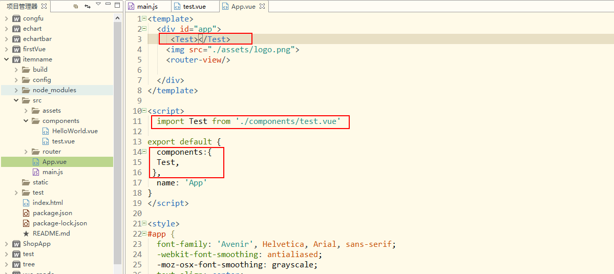 8:在App.vue中引入test.vue