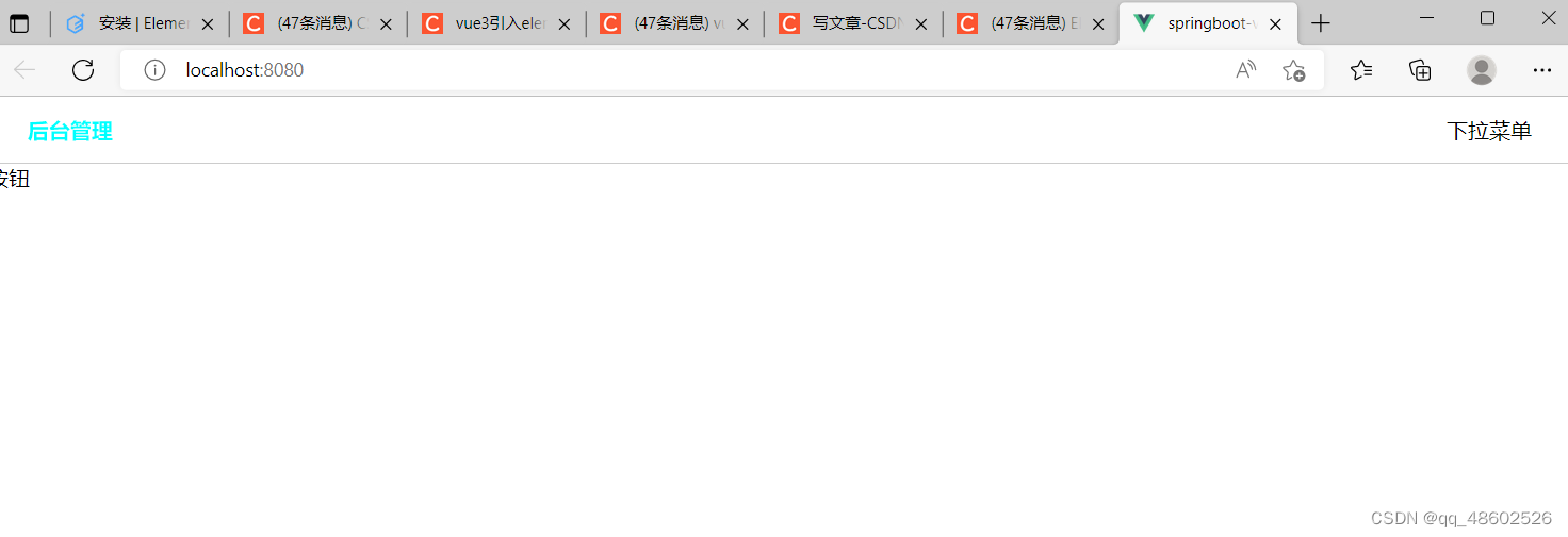 以上就是无辜香烟最近收集整理的关于用vue3在idea引入element-plus后使用里边的el-button标签检验是否成功引入 但是网页部分变成空白的全部内容,更多相关用vue3在idea引入element-plus后使用里边的el-button标签检验是否成功引入内容请搜索靠谱客的其他文章。