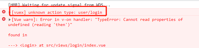 以上就是自然店员最近收集整理的关于报错:[vuex] unknown action type: user/login的全部内容,更多相关报错:[vuex]内容请搜索靠谱客的其他文章。