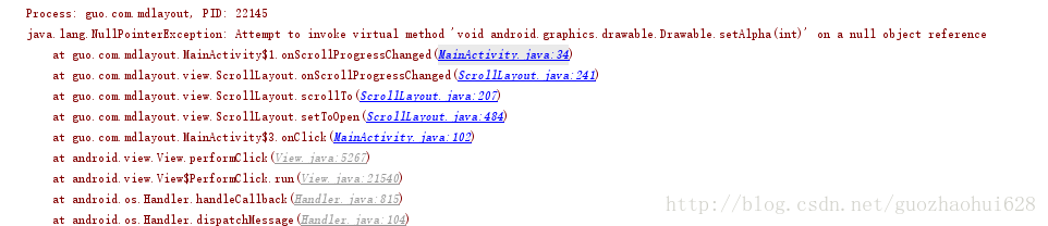 以上就是野性秀发最近收集整理的关于Attempt to invoke virtual method 'void android.graphics.drawable.Drawable.setAlpha(int)' on a null o的全部内容,更多相关Attempt内容请搜索靠谱客的其他文章。