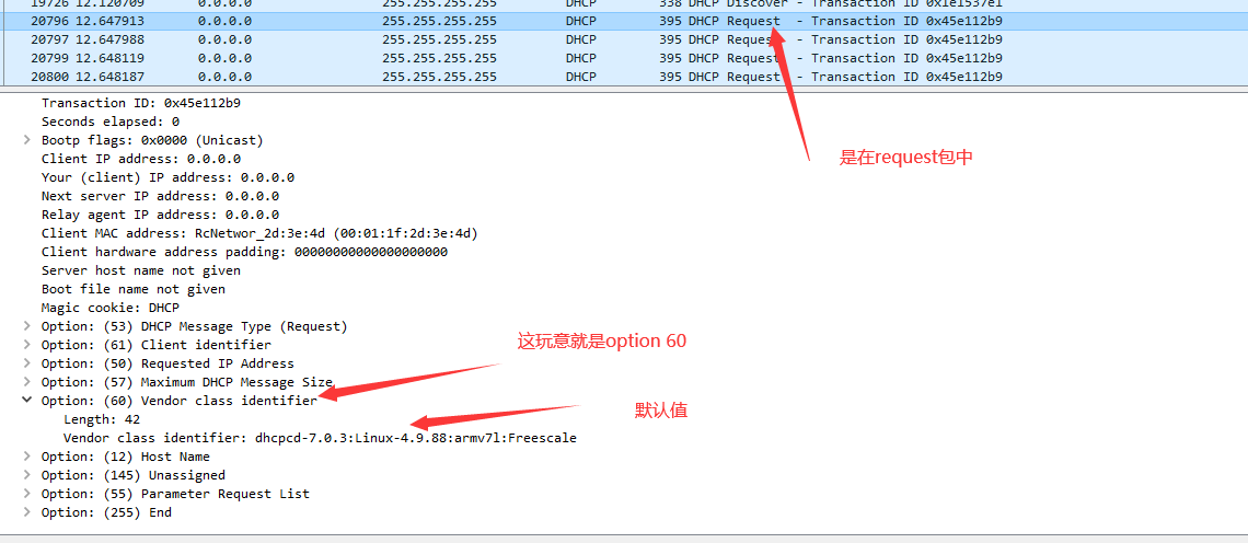 修改dhcp request,以为dicorver会自动加上option60 ,这个方向是不是也是错的?基本可以确定是错的。
