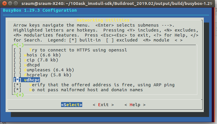 修改udhcpc源码后,使用buildroot编译后没有效果,因为udhcpc是在busybox下面的,所以要先使用busybox编译后再使用buildroot编译,buildroot只会使用busybox的中间文件.o
