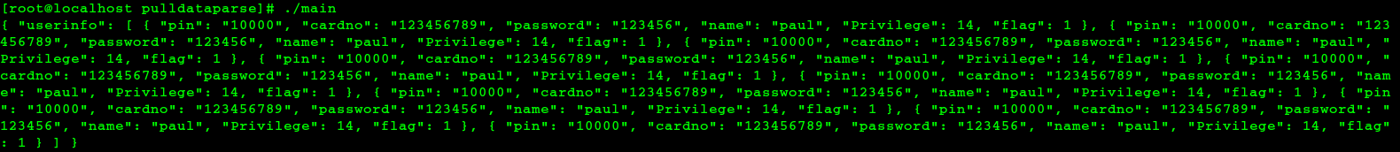 { "pin": "10001", "cardno": "123456789", "password": "123456", "name": "paul", "Privilege": 14, "flag": 1 }, n