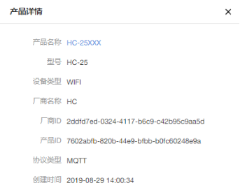 点击“详情”,可以看到刚创建产品的详情如下: