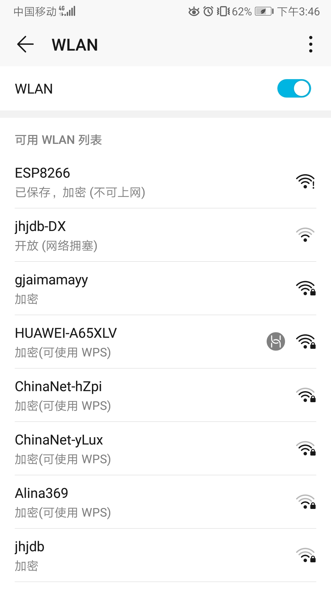 3.4.4 这里我们选择"TCP服务器模式",这时状态会显示连接失败,因为还没有设备连接进来,接着打开我们手机的wifi,便可搜索到ESP8266, 点击连接: