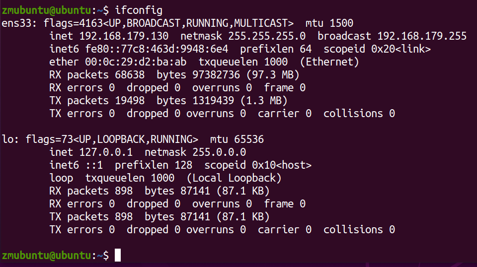 输入ifconig来查询