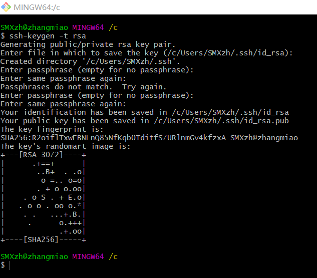中间会让我们选择公钥文件的存储地址,没有特殊要求就回车确认