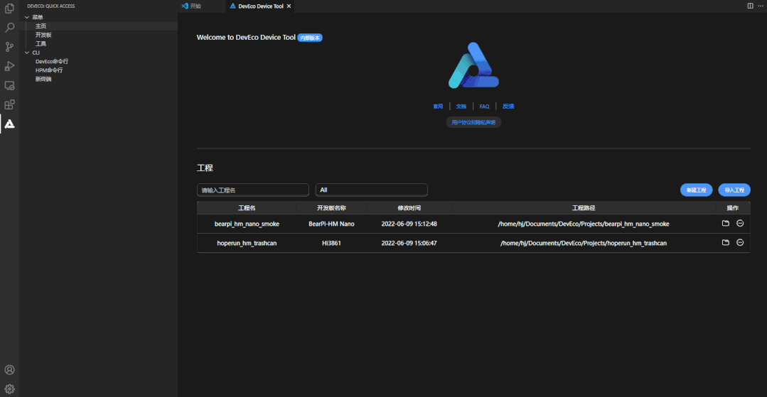 ● 修复了创建工程成功后,Ubuntu目录下有工程,但DevEco Device Tool中不显示工程的问题。