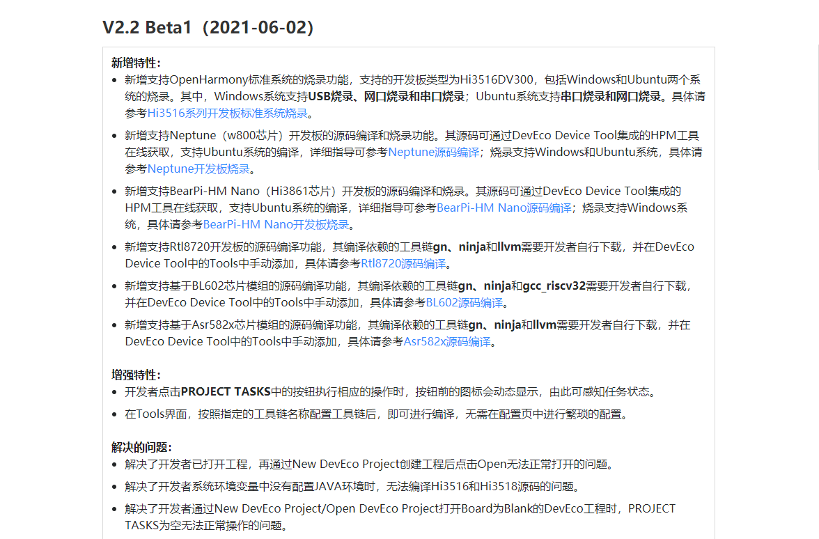 当然,官方也提供了2.2的Beta版本,提供了大量的新增特性,不过大部分都是新开发板的适配,我们使用的Hi3861目前还没必要升级,所以这里就把Beta版升级为正式版即可。