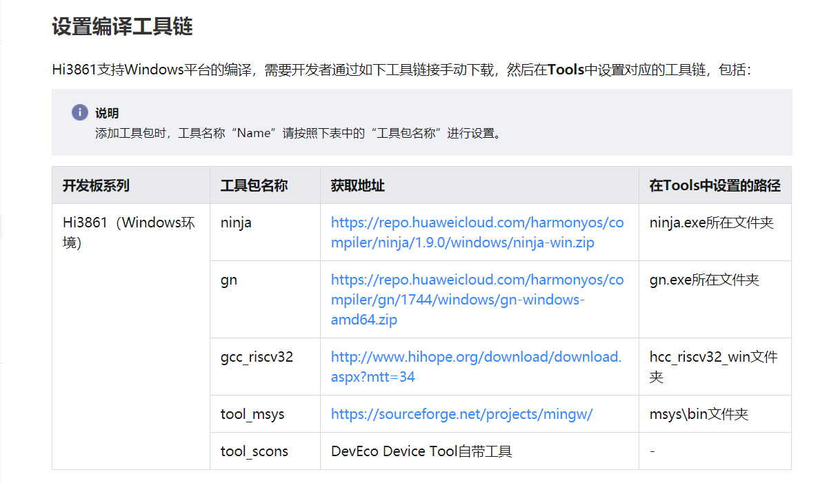 先看这个表,相对于之前的表来看,针对工具链来说只是将原来的Git变为了mingw。但是仔细看会发现,原来的ninja和gn,一个是需要去github下,一个要去外网下,对国内网络的用户都并不友好。
