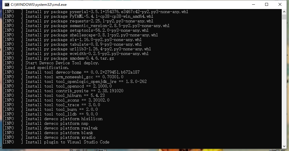 然后就和上一篇博客里一样了:环境如果安装好了(和之前的环境是一样的),直接双击,它会自动运行,给你安装很多东西,最后在你的VS Code里装好插件。装完这个界面会自动关闭。