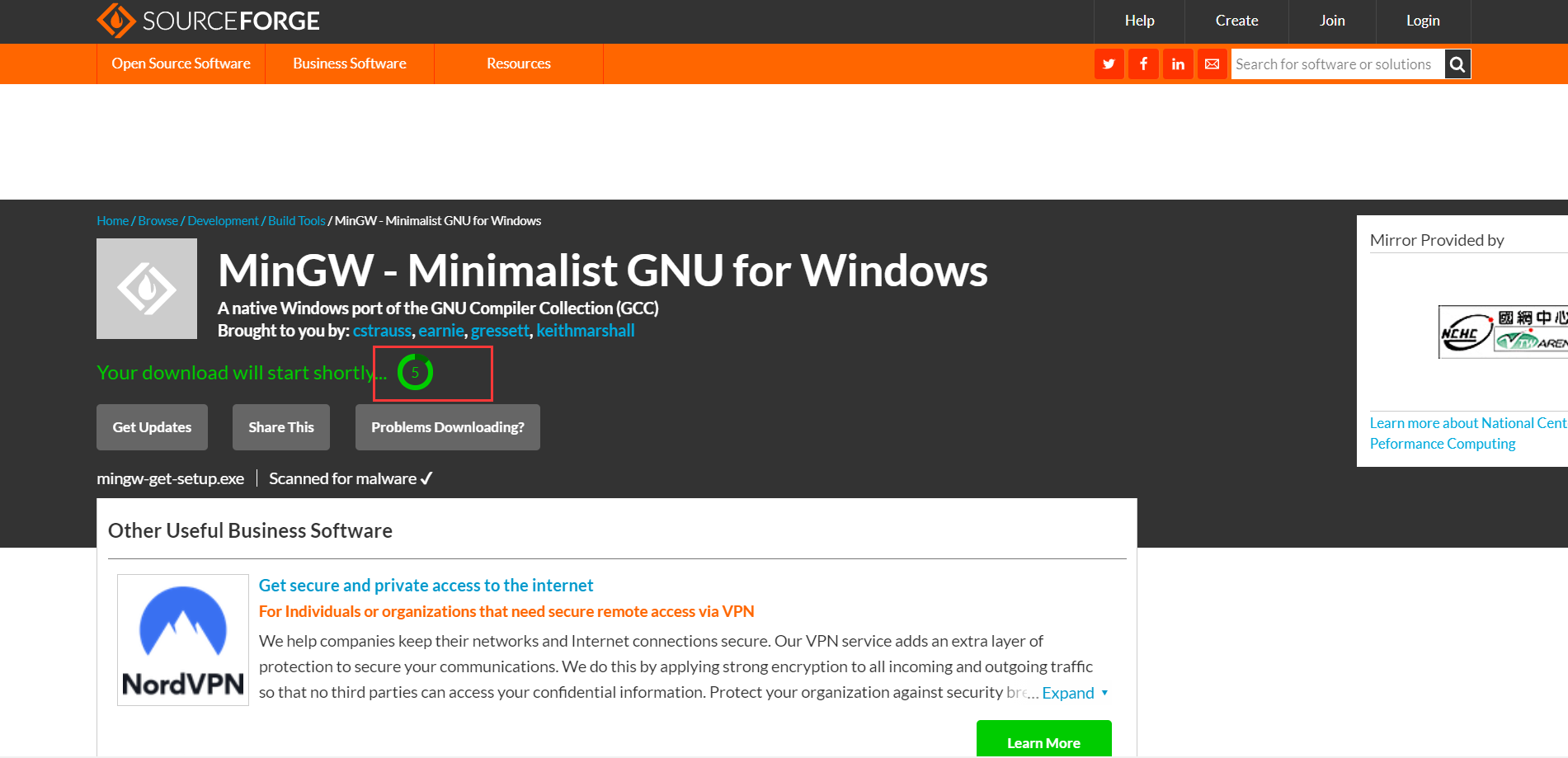 点击downlaod后,五秒倒计时一结束,就会下载mingw了。然后可以按照MinGW安装教程这里说的一步步安装即可。