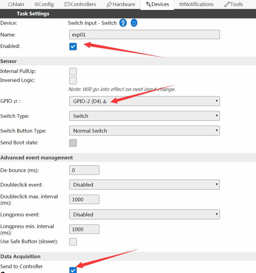 3.设备名称,Enabled,GPIO,Send to Controller 都选上。