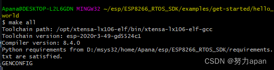 以上就是壮观镜子最近收集整理的关于ESP8266环境搭建-ESP8266_RTOS_SDK(超详细)的全部内容,更多相关ESP8266环境搭建-ESP8266_RTOS_SDK(超详细)内容请搜索靠谱客的其他文章。