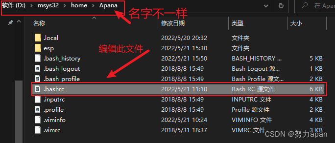 使用文本编辑器(VSCode、Notepad++等)编辑.bashrc