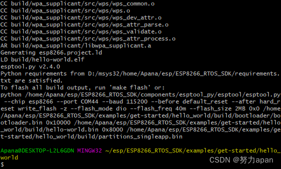 cd ~/esp/ESP8266_RTOS_SDK/examples/get-started/hello_world