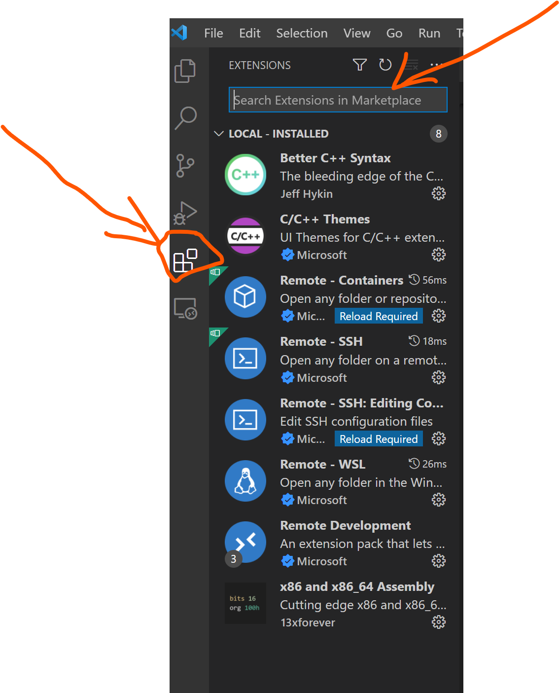 注意,上述的三个extension是需要安装到远程的,不是安装到本地,安装方法与上边安装remote的方法一致,只不过是需要连接到远程后安装;