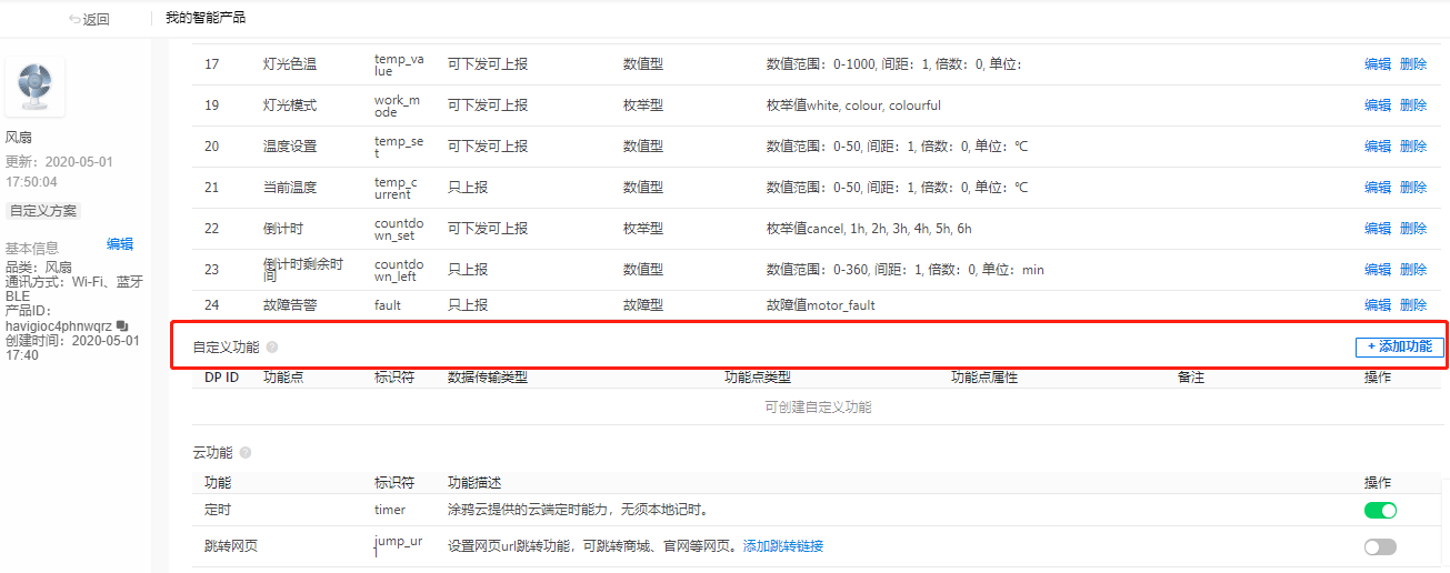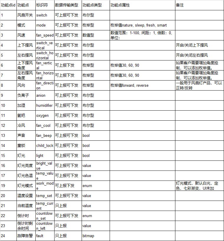 a.标准功能点 标准功能点已经涵盖风扇产品绝大部分通用功能,如需某个功能点直接选择即可。 注意:如需开通语音,请尽量使用标准功能点。