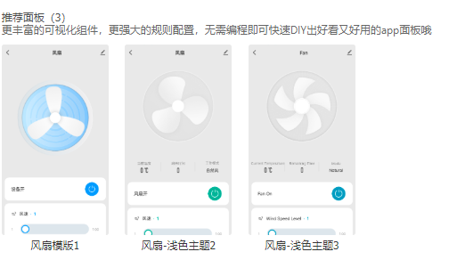 b.面板工作台 面板工作台目前提供了3套模板,拥有更丰富的可视化组件,更强大的规则配置,无需编程即可快速DIY出好看又好用的app面板。