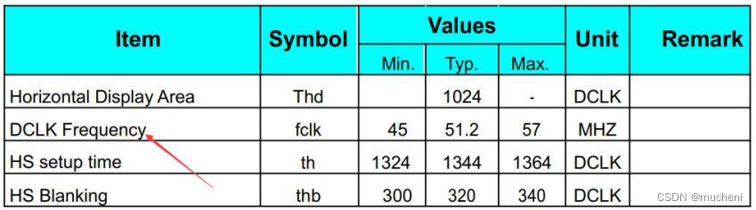 默认的时钟为 48.96MHZ,通过查阅屏幕的数据手册,可以发现 48.96MHZ 在屏幕的支持范围以内,所以这里我们就不需要修改了,如下图所示: