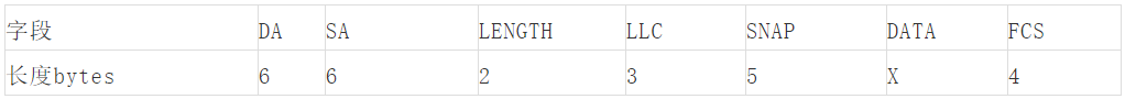 SNAP:表示3byte的厂商代码和2byte的协议类型表示