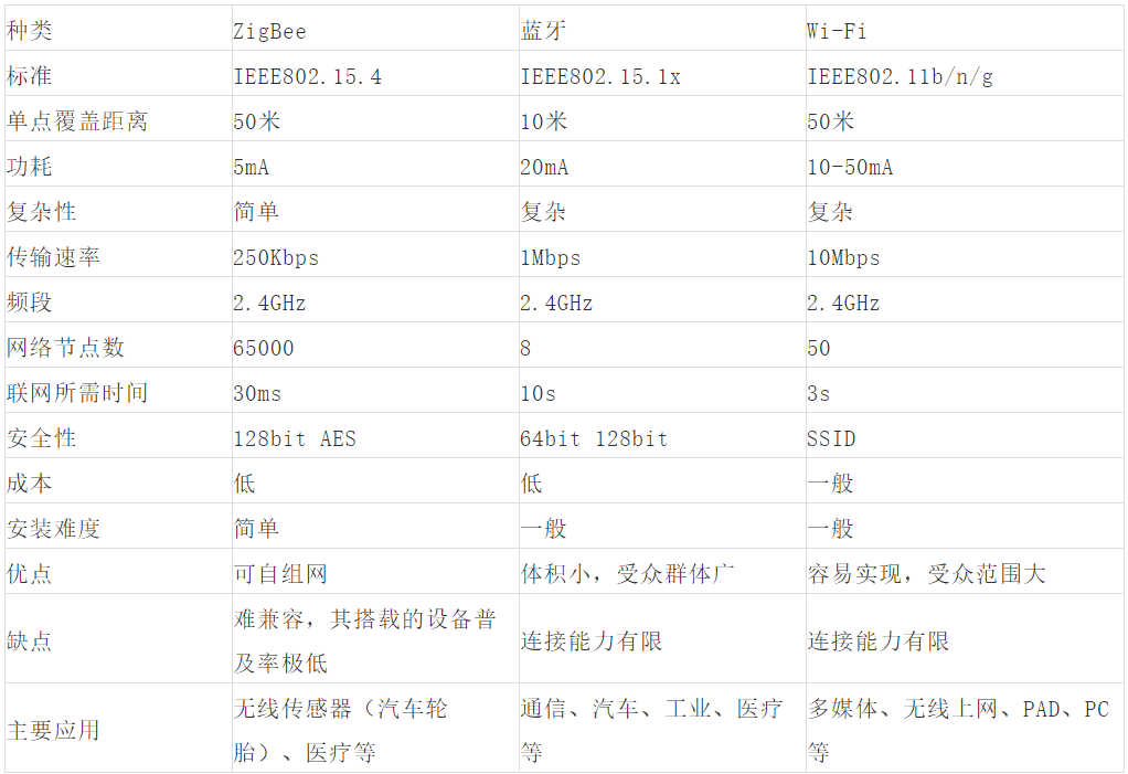 目前市场上常见的接入协议有ZigBee、蓝牙以及Wi-Fi协议等:
