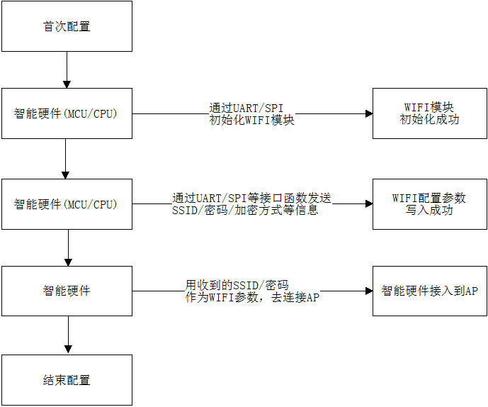 直接配网方式软件方案实现简单,但需要铺设其他的通信线路,比较适合于板载WIFI模块,或有其他协议传输线连接的设备间。因此对于环境要求比较高,需要在系统间有其它的通信链路存在。