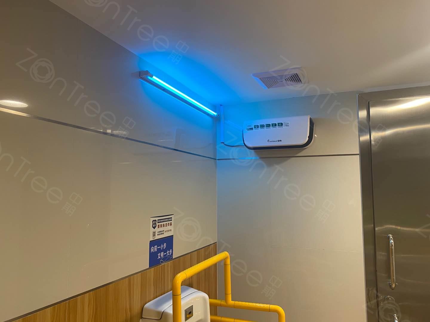 通过高能离子除臭杀菌机、紫外线消毒灯,(中期科技原创,侵权必究)能有效杀灭厕内的细菌、病毒、臭味,让厕所保持卫生、安全的状态。