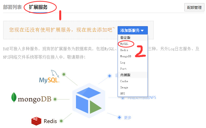 点击扩展服务-添加新服务-MySQL