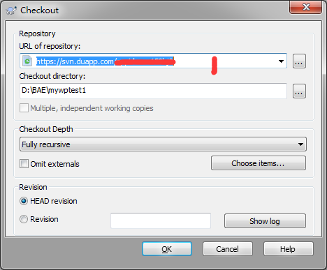 此处”URL ofrepository:”填写前面复制的SVN地址