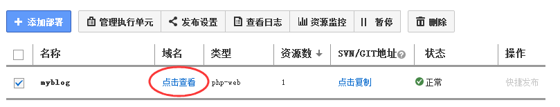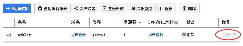 回到百度BAE管理页面,刷新页面后快捷发布