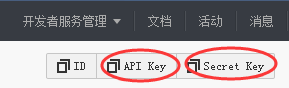 需要注意的是此处的用户名和密码是”该应用的API Key/Secret Key”。在百度BAE管理控制台页面的右上角。