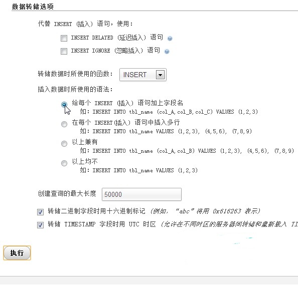 如果仍然导入失败,请根据这个界面的提示修改sql脚本,我就是在这个地方修改了好几遍。最诡异的一次是一行 INSERT INTO `wp_posts` 莫名其妙导致失败。可能是某字段含有非法字符吧,最后只有删掉了这行里面的这个字段,导入成功后再手工补回来。这个完全靠自己灵活处理了,必要的时候在导出之前选择单行模式,方便排错: