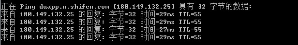 在DNS解析提供商处删除或停用原来的解析,添加一行CNAME记录,指向类似于 hankcs.duapp.com 的默认域名。然后试着ping 一下,确保解析生效: