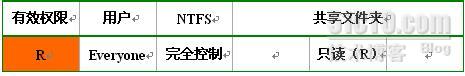 (5)最后有效权限为共享权限与NTFS权限中最严格限制的权限(共享权限与NTFS权限的交集)