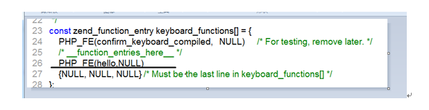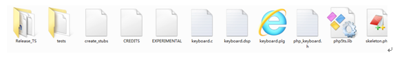 将php_skeleton.h , skeleton.c , skeleton.dsp这三个文件重命名为php_keyboard.h ,keyboard.c ,keyboard.dsp ,然后将这三个文件中的extname全部替换为keyboard,EXTNAME 全部替换为KEYBOARD(注意:严格区分大小写)