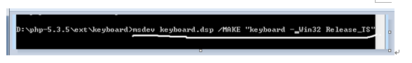 至此,php_keyboard.dll文件已经生成了,在D:php-5.3.5Release_TS文件夹下。然后将它放在php的ext目录下,在