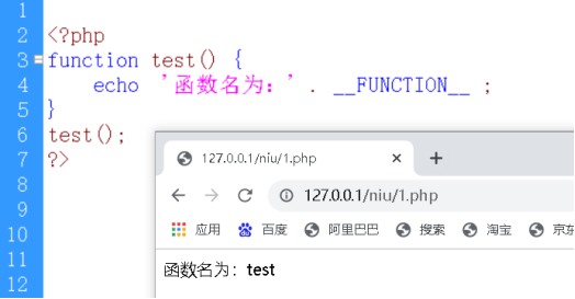 __FUNCTION__ :常量返回该函数被定义时的名字(区分大小写)