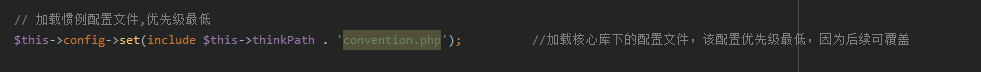 $result = $this->config = array_merge($this->config, $name); //$this->config->set(include $this->thinkPath . 'convention.php');没有传value,直接将配置文件返回的数组合并