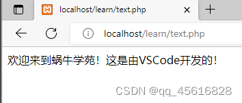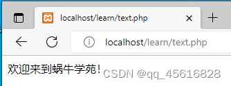 在D:xampphtdocslearn 新建text.html,输入<font color="red"> 欢迎来到蜗牛学院!</font>