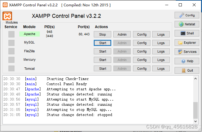 安装Xmapp,安装好的如下