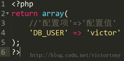 接下来,修改“前台项目/Conf/Config.php”,在Array数组中,加入如下内容: